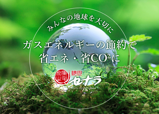 セナラは地球温暖化対策の一環としてガスエネルギーも節約すればCO2の削減に貢献でいると考えております。みんなの地球をもっと大切にする取り組みを積極的に進めて行くと同時にご来店のお客様にもご協力をアピールさせていただいております。
