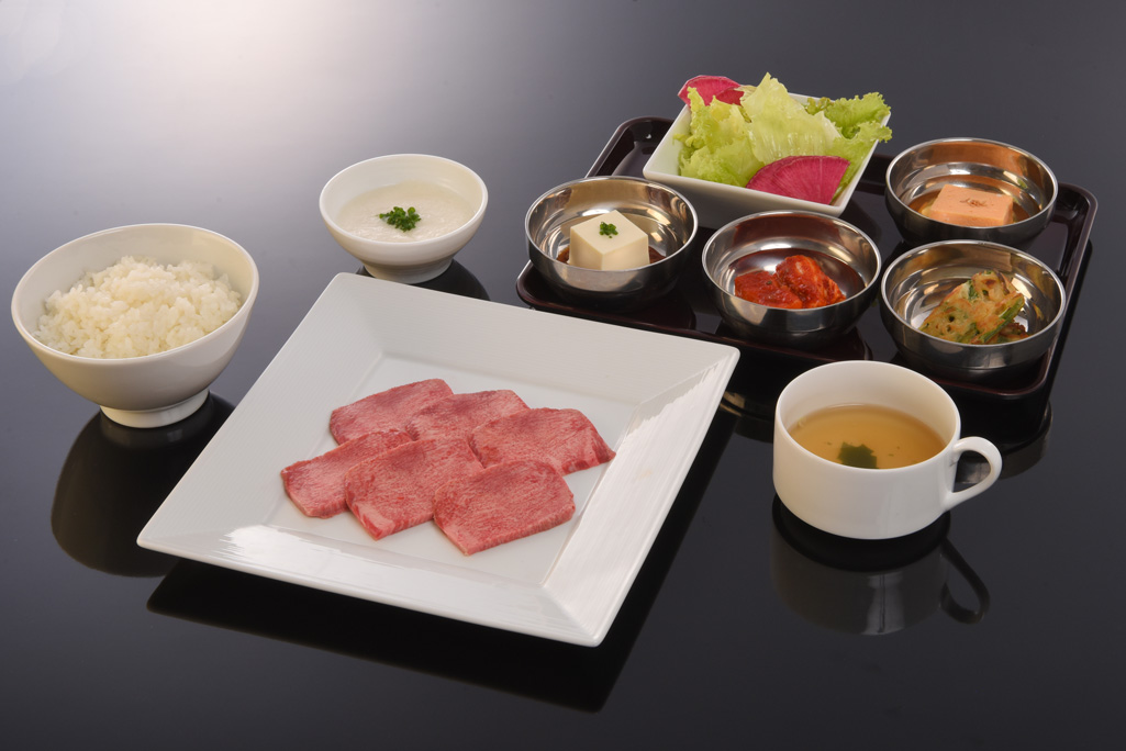 上タン6枚・韓国前菜4種・サラダ・わかめスープ・とろろ・ライス