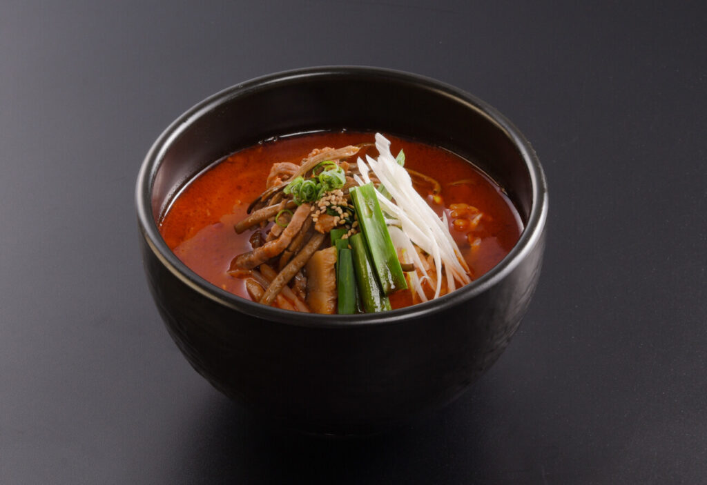 牛肉と野菜を醤油ベースの薬味で炒め、香りを立たせた辛口雑炊。