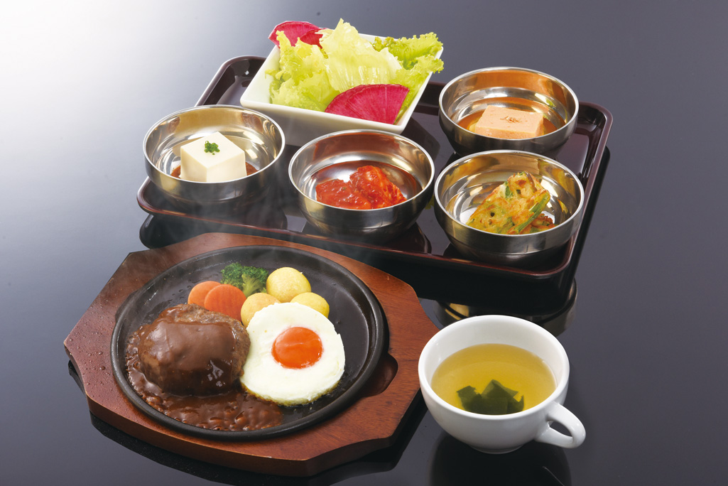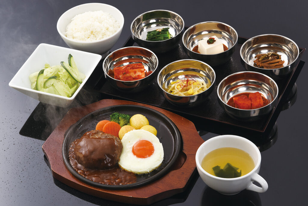 韓国前菜4種・サラダ・わかめスープ・ライス