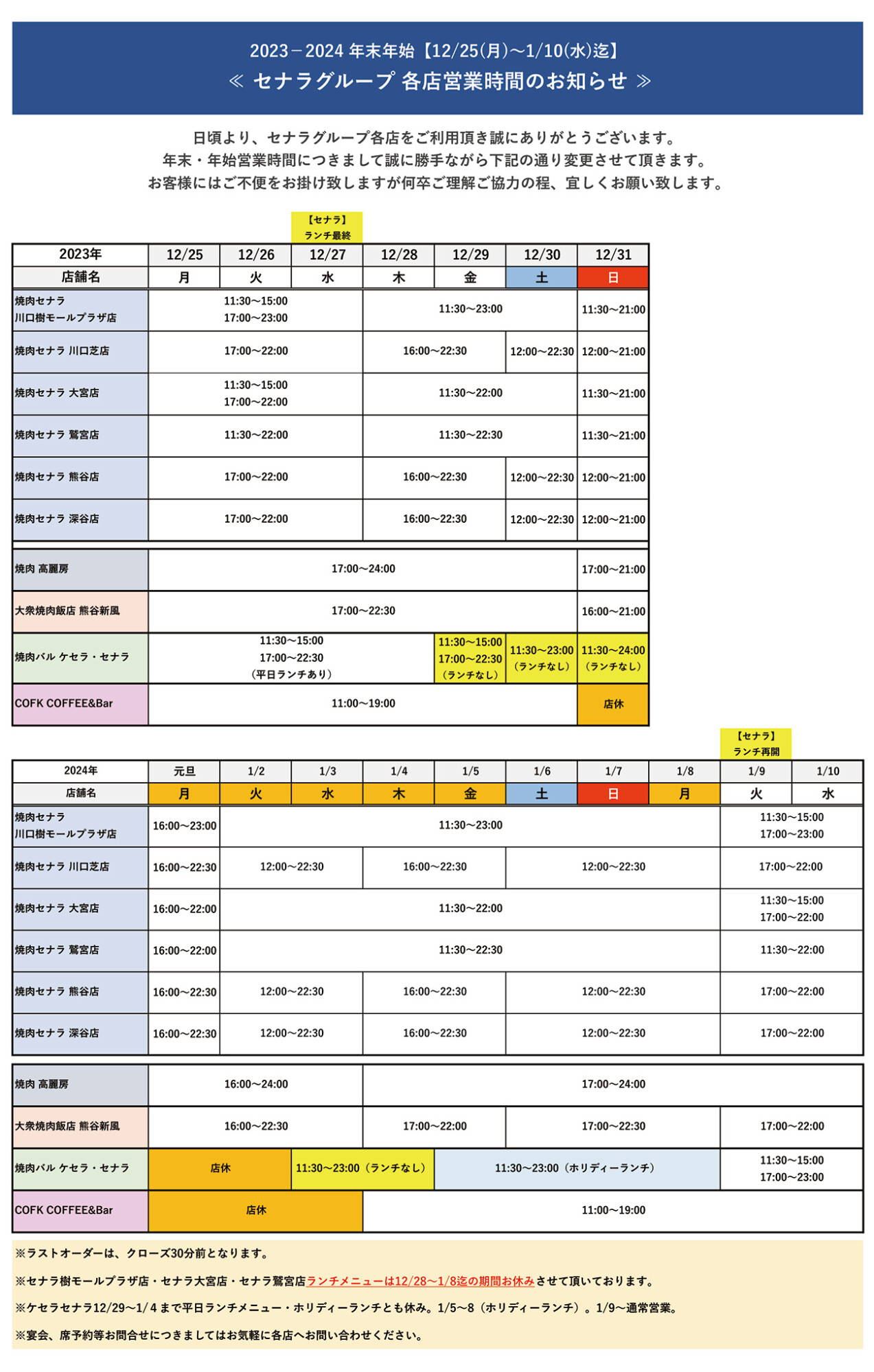 【12/25(木)~1/10(土)】年末年始営業時間のお知らせ