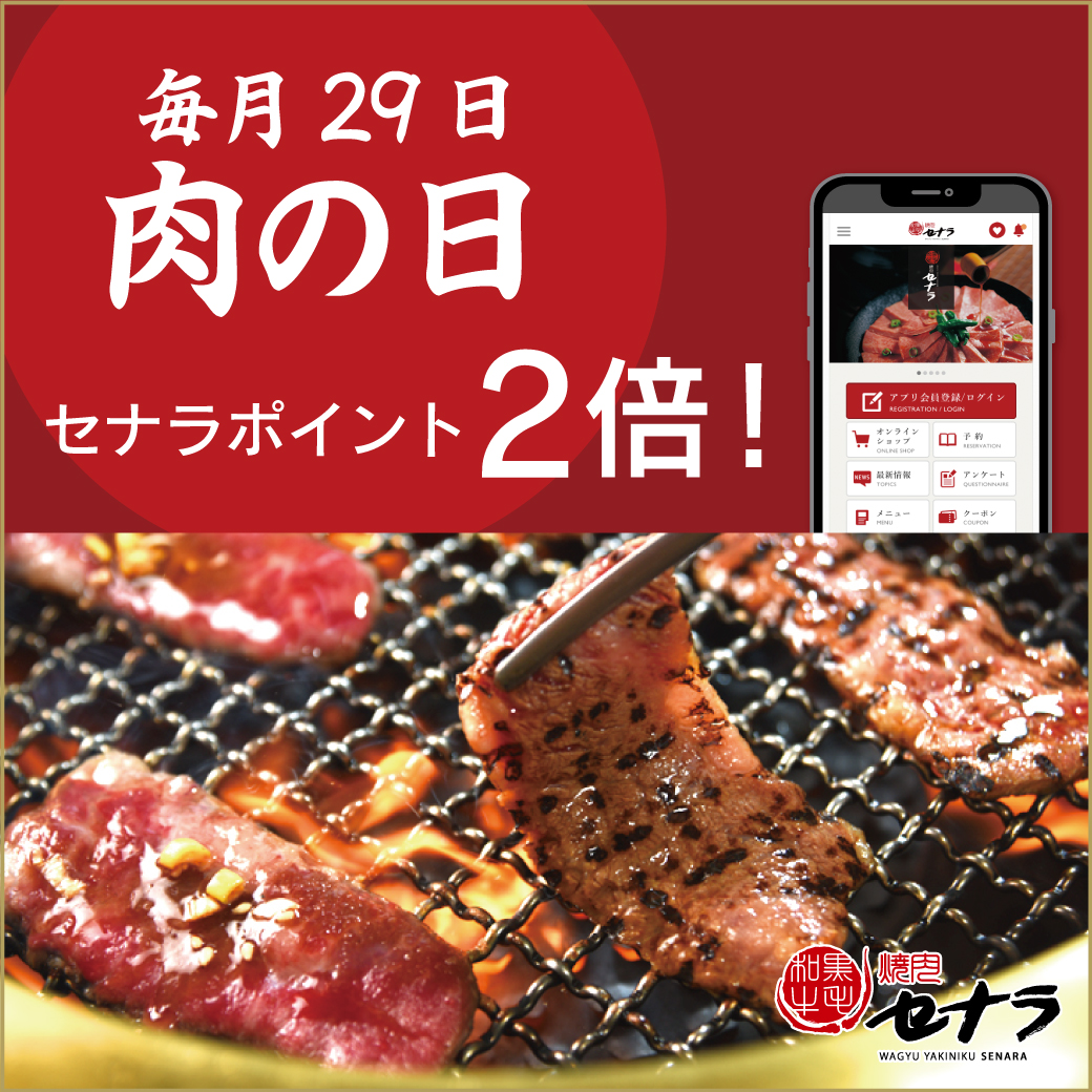 毎月29日は肉の日といたしまして、新アプリ【トイポ】のポイントを2倍贈呈!