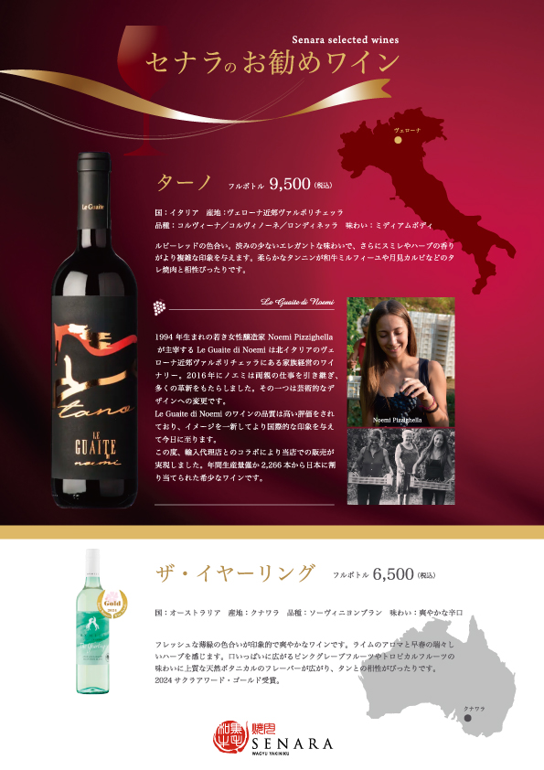セナラからお勧めワイン2種類販売開始!