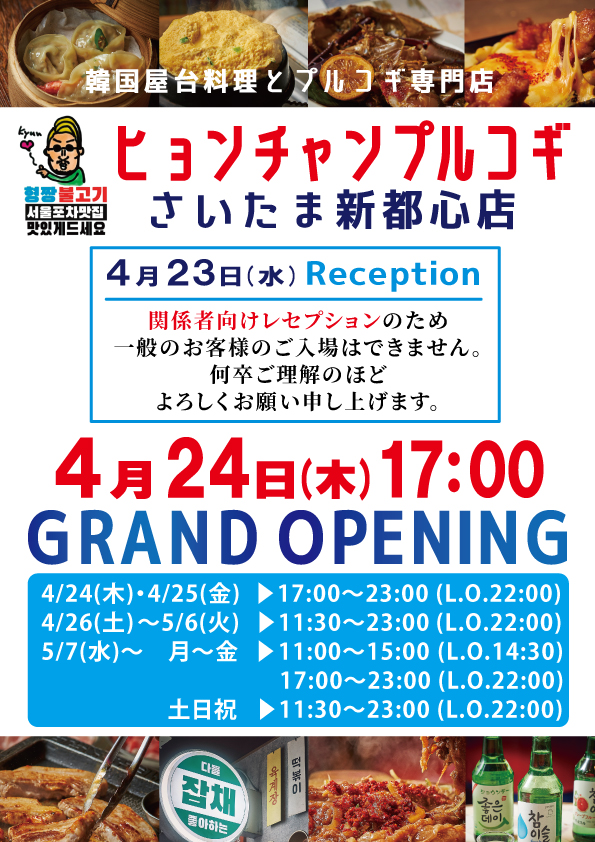 この度「ヒョンチャンプルコギ さいたま新都心店」がグランドオープンいたします。