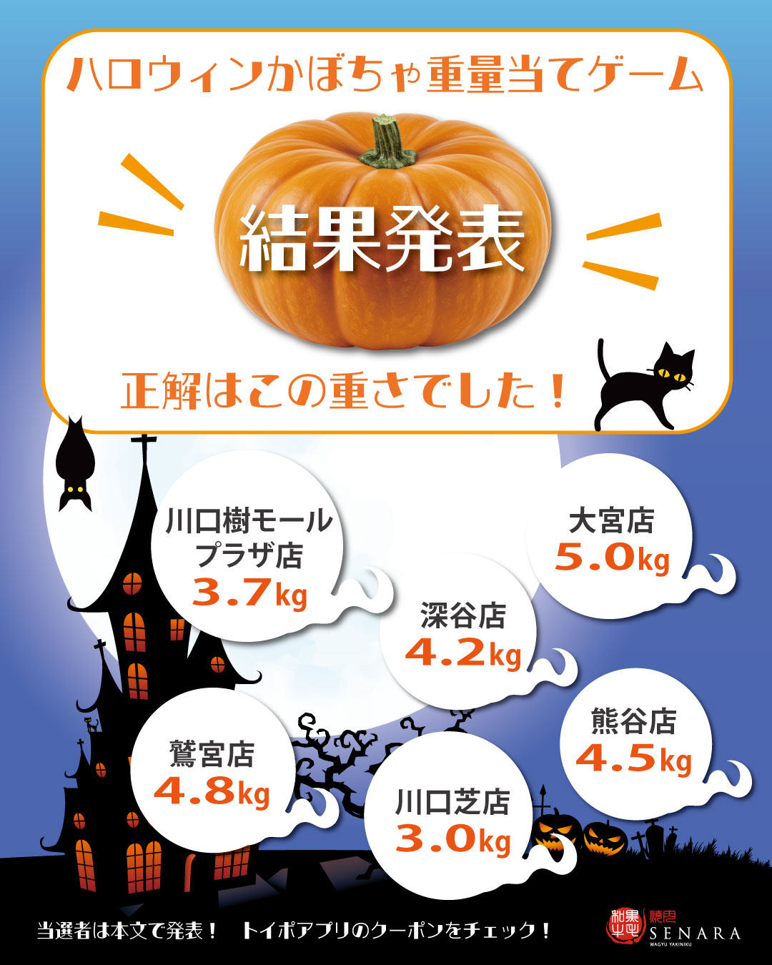 各店舗のかぼちゃの「正解の重さ」を発表します!